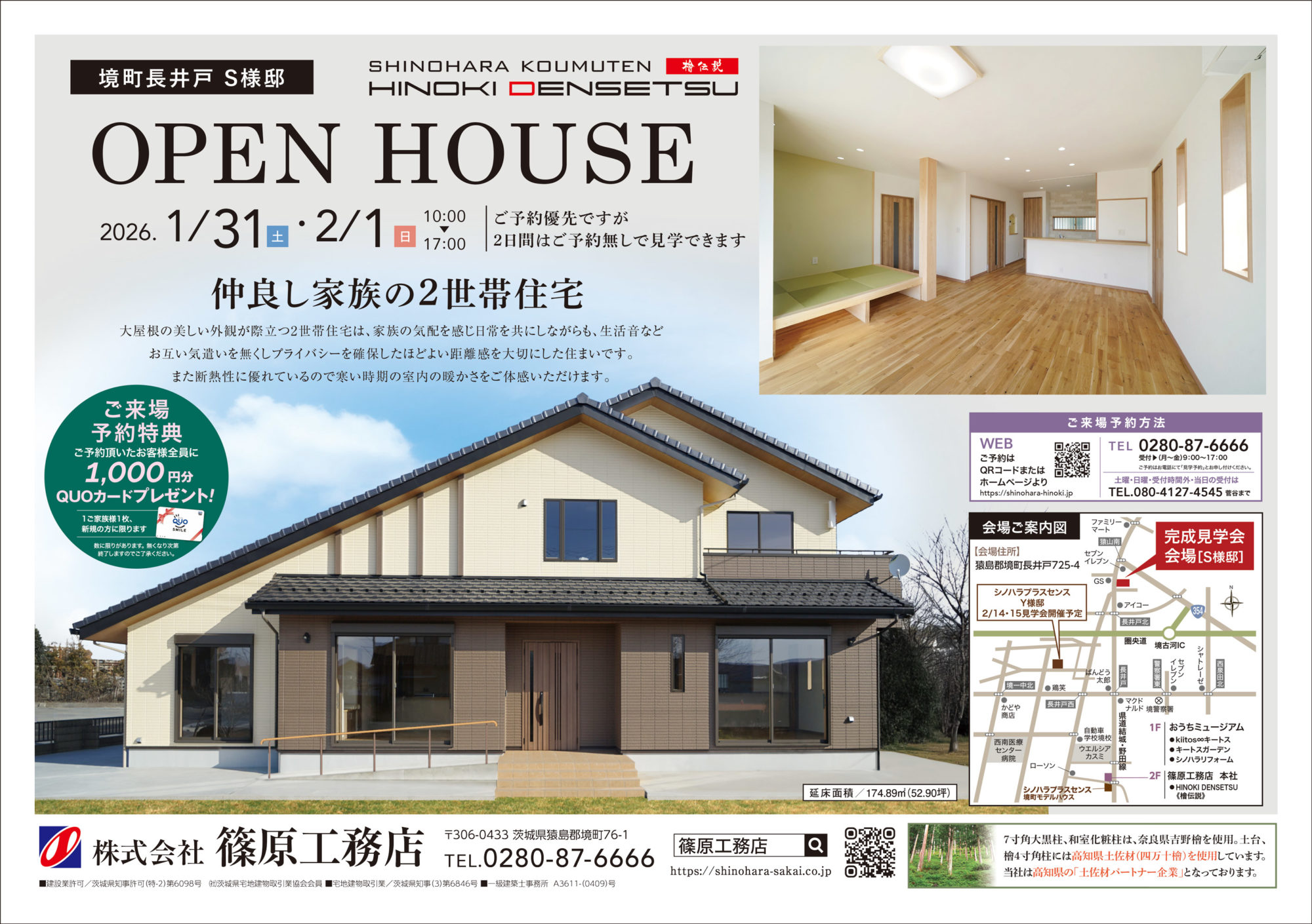 2026.1/31(土)・2/1(日)10:00〜17:00完成見学会開催致します。