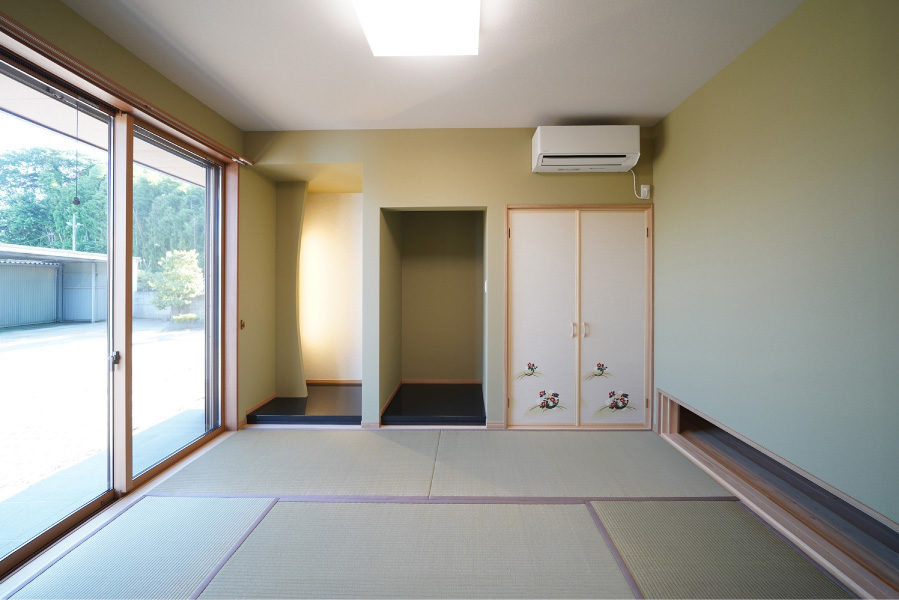 • 心地よい檜の腰壁と床豊かな香りに包まれた空間。