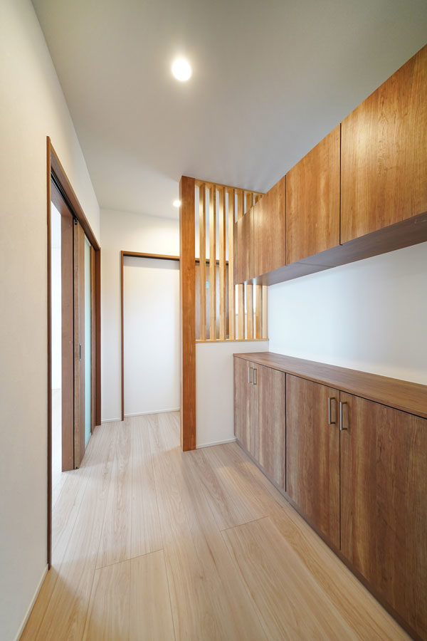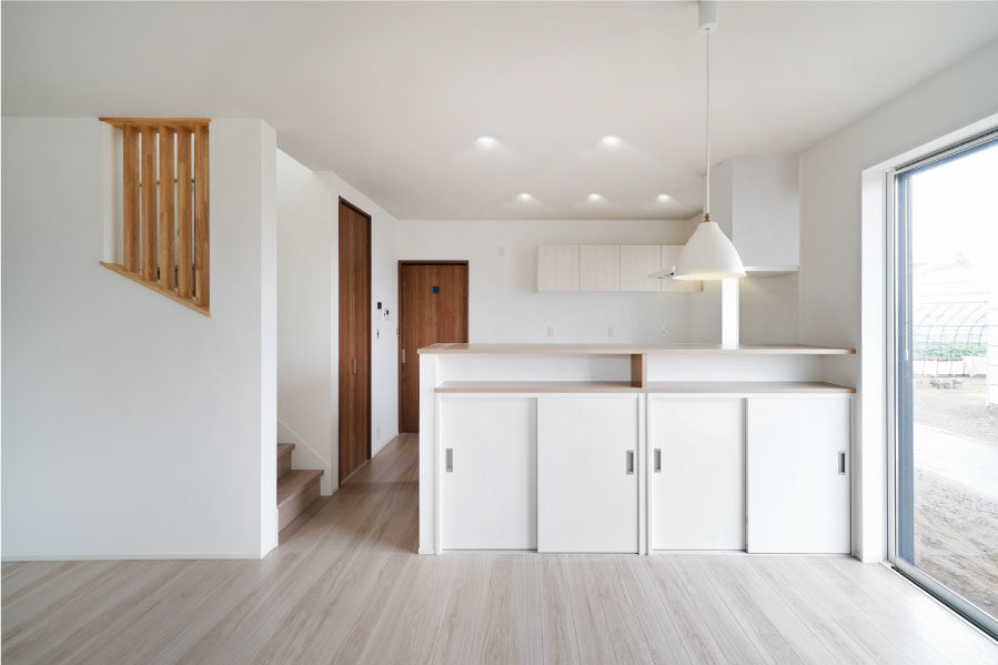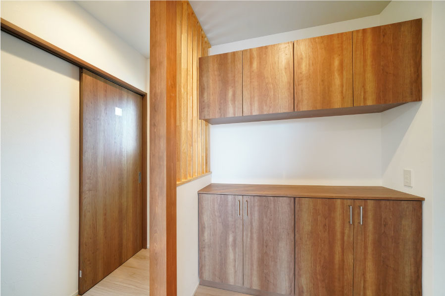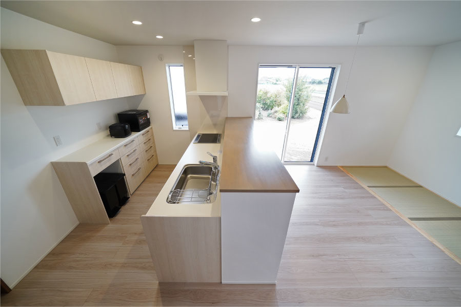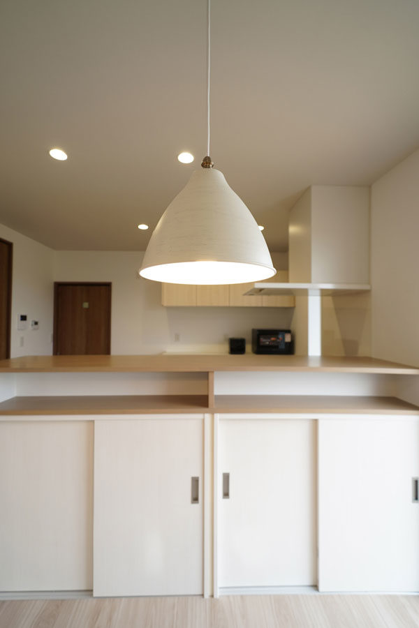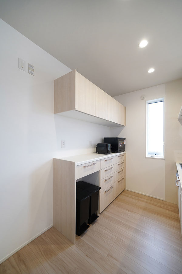 キッチンカウンター下の収納スペースは生活に必要な物をスッキリ片付けることが出来るので大変便利です。