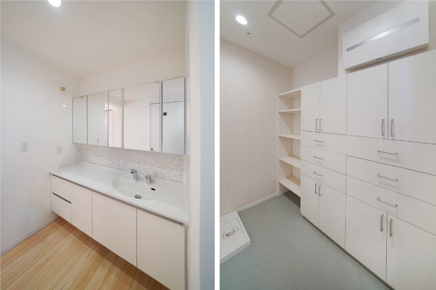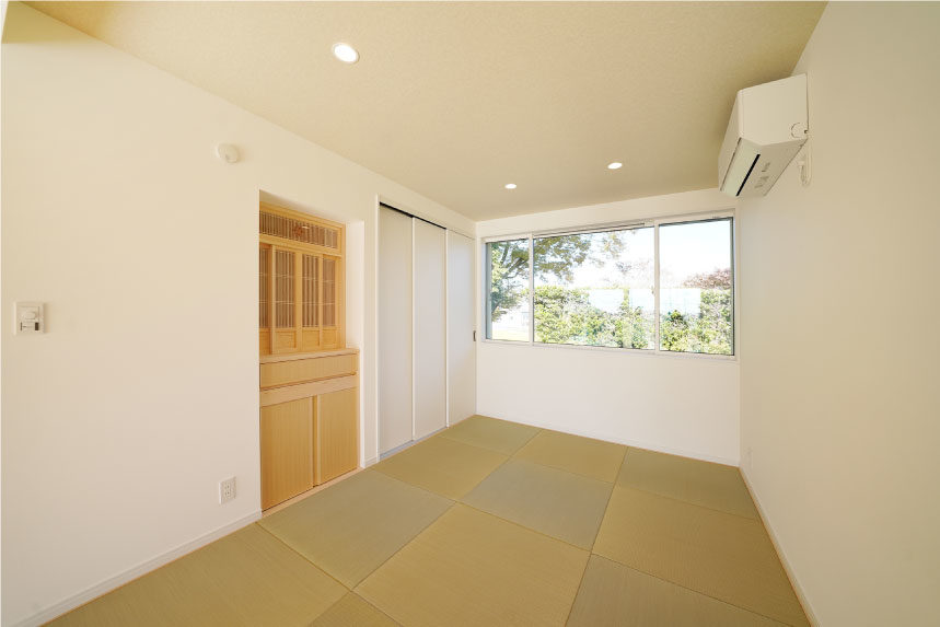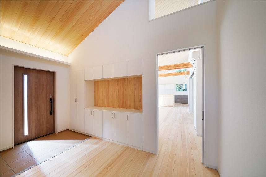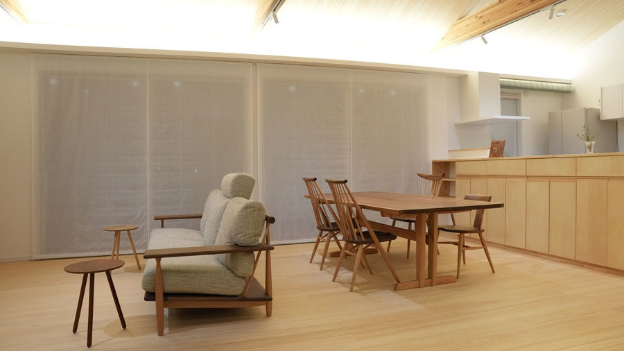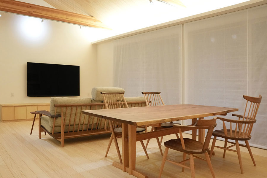 白を基調とした空間に天然木が調和した美しいデザイン。北側の高窓からは優しい光が差し込み、見上げるとその先に広がる青空、そして揺れる木々を愉しむことができます。